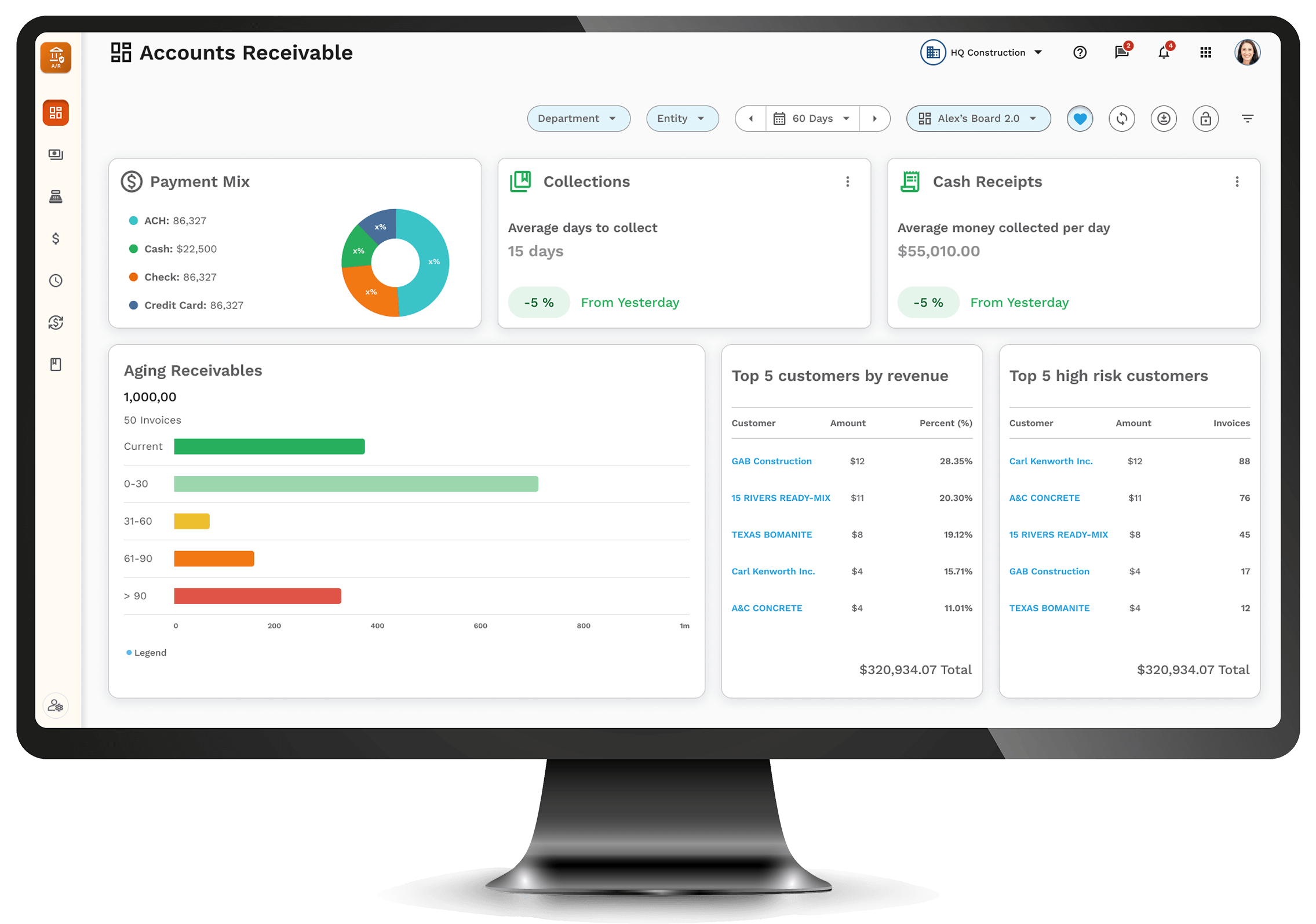 Tenha visibilidade em tempo real dos pagamentos por cliente ou projeto e gerencie previsões e custos pendentes com segurança, com uma solução desenvolvida especificamente para os processos e desafios da indústria de materiais de construção.